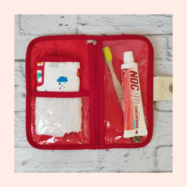 ESTUCHE CON BOLSILLO CON CIERRE PARA CEPILLO Y CREMA DENTAL Y BOLSILLO PARA TOALLA
