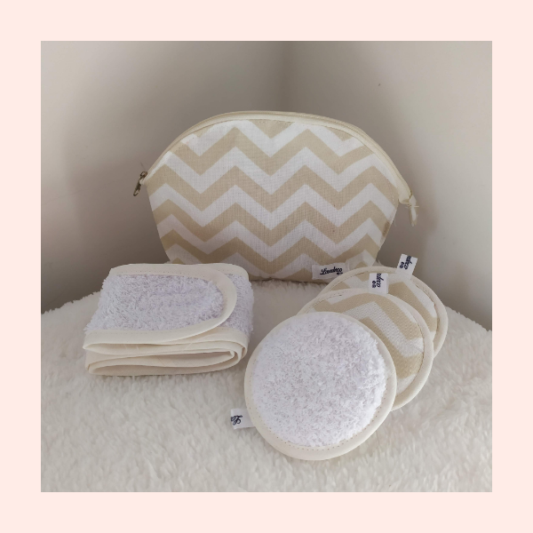 ESTE SET INCLUYE NECESER KYLIE PEQUEÑO, 3 PADSDESMAQUILLANTES Y VINCHA DE TOALLA