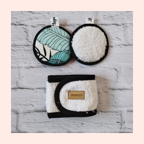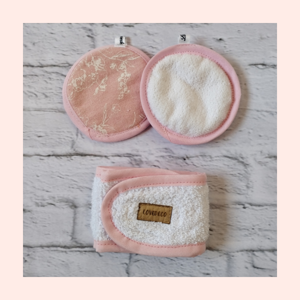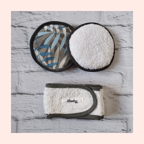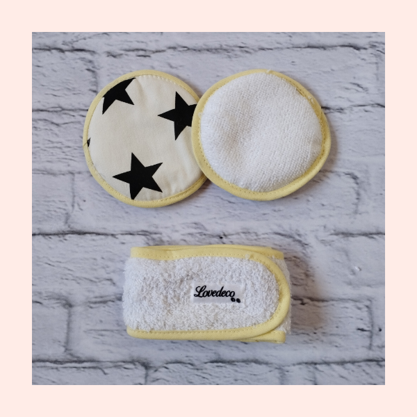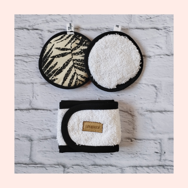 EL SET INCLUYE DOS PADS Y VINCHA CONFECCIONADO EN TOALLA DE ALGODON Y GABARDINA
