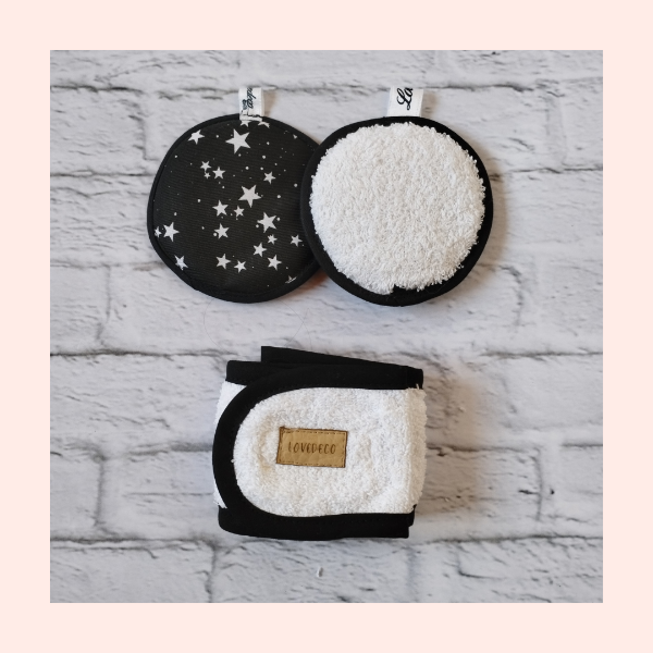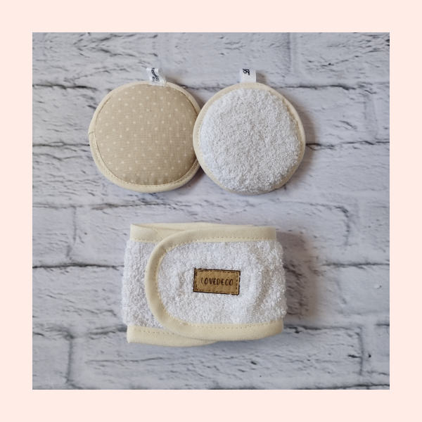 ESTE SET CONTIENE 2 PADS DESMAQUILLANTES Y VINCHA CONFECCIONADA EN TOALLA DE ALGODÒN Y TELA PLANA